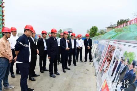 4月11日,湘潭市委常委、副市長吳志雄帶隊赴韶山市產教融合職業教育園建設項目調研,韶山市委副書記劉志剛、湘江公司黨委書記、董事長張賢軍,項目部管理人員全程陪同。..