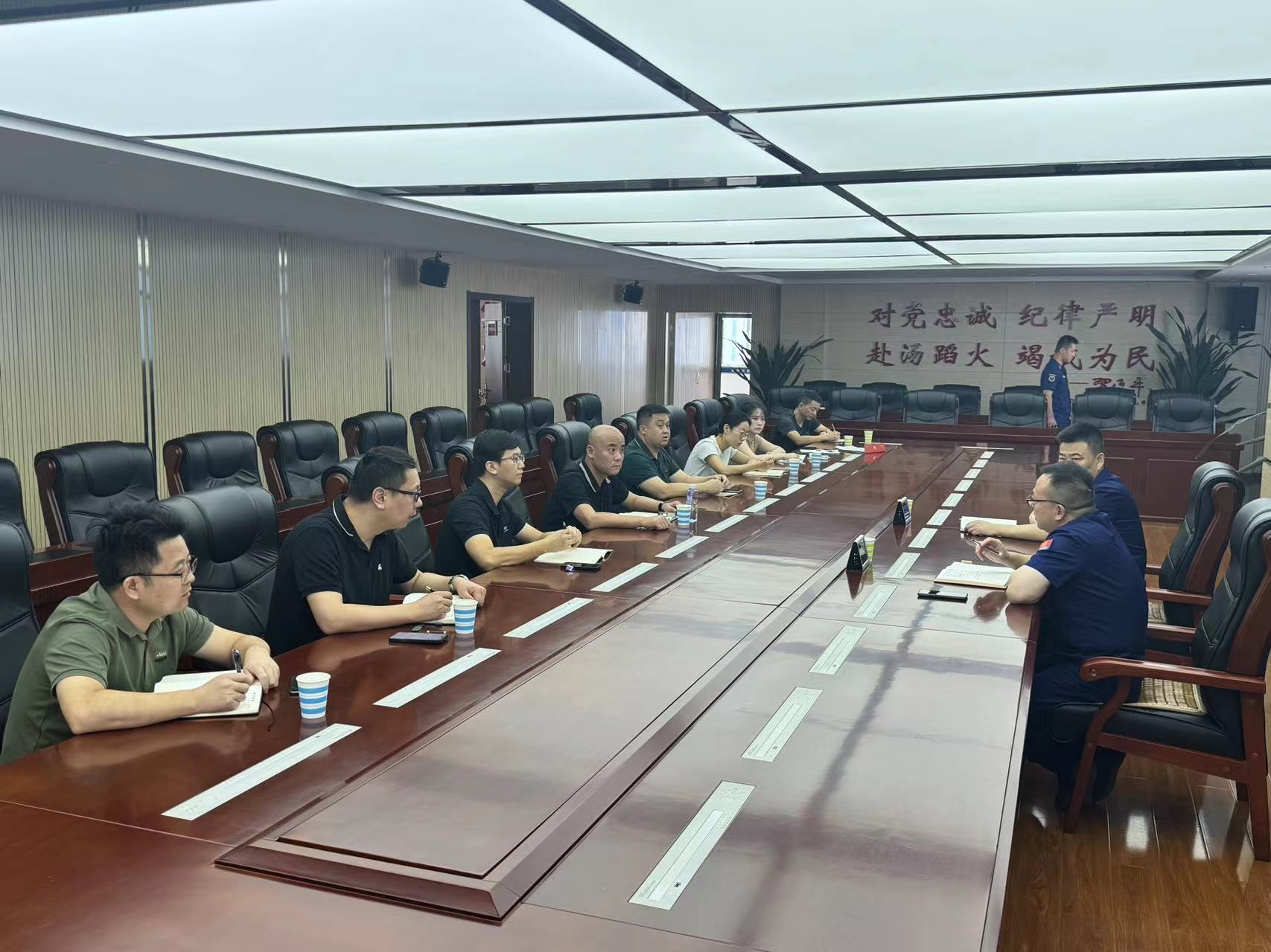 9月25日上午,湘江公司黨委書記、董事長王曉龍帶隊赴襄陽市消防特勤訓練基地建設項目指揮部,就進一步推進項目建設相關事宜與業主方襄陽市消防救援支隊進行磋商,業主方代表支隊政委方文連,支隊長梁閏生參加了座..