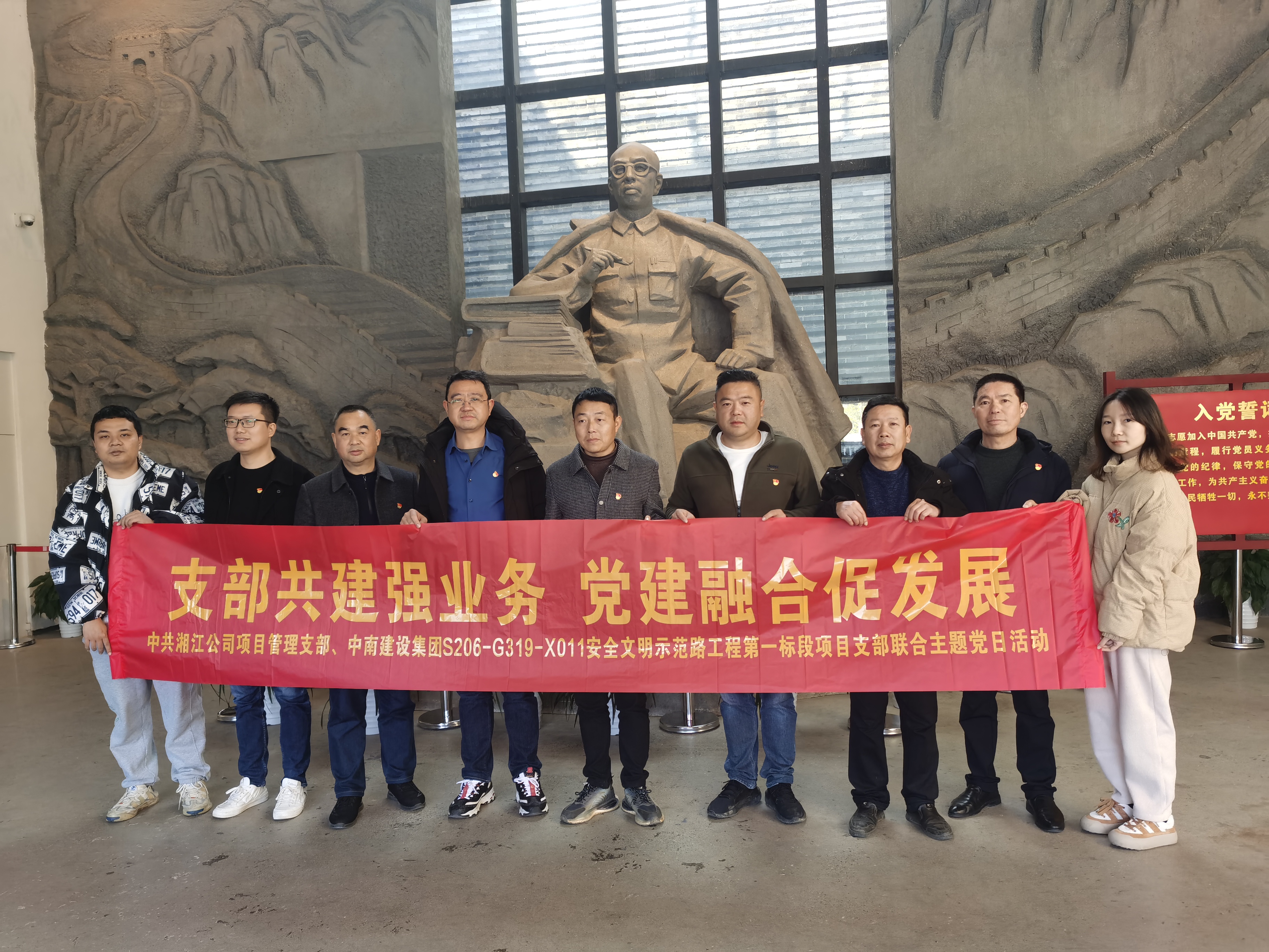 活動組織參觀了S206-G319-X011安全文明示范路工程項目現(xiàn)場,在“支部共建強業(yè)務 黨建融合促發(fā)展”座談會上,黨員們就項目管理業(yè)務、黨建融合、黨建工作亮點等工作實際情況進行了交流發(fā)言。隨后大家參觀了田漢同志故居,并重溫了入黨誓詞。黨員們紛紛表示,此次主題黨日活動收獲滿滿,真正實現(xiàn)了黨建與業(yè)務工作的融合互促。希望以此次活動為契機,能夠與兄弟單位、項目持續(xù)深度探索黨建聯(lián)合,積極探索以黨建促業(yè)務發(fā)展的工作經(jīng)驗和方法,不斷提升黨組織在企業(yè)發(fā)展中的凝聚力、組織力和影響力,切實以高質(zhì)量黨建引領湘江公司的高質(zhì)量發(fā)展。