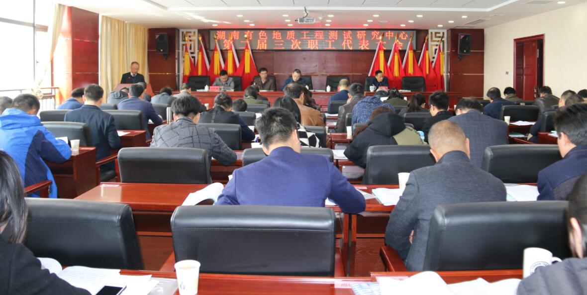 2018年3月22日至23日,測研中心在有色產業大廈16樓會議室組織召開了第二屆三次職工代表大會。局總工程師曹幼元,局發改處處長夏凡、人事處副處長張永紅應邀出席。中心領導班子、職工正式代表及列席代表共55人齊聚一堂,滿懷激情履行職工代表職責,共同謀劃中心未來發展。