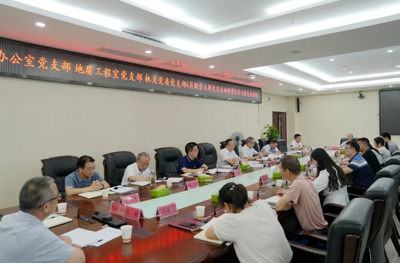 6月26日上午,省地質院黨委書記談文勝參加院辦公室、地質工程室、機關黨委三個黨支部聯合開展的主題黨日活動暨黨紀學習教育座談會,與支部黨員同志一起交流學習體會,更好推動黨紀學習教育入腦入心、走深走實。院黨委委員、總工程師曹幼元,黨委委員、副院長全鐵軍以普通黨員身份參加會議并作交流發言。