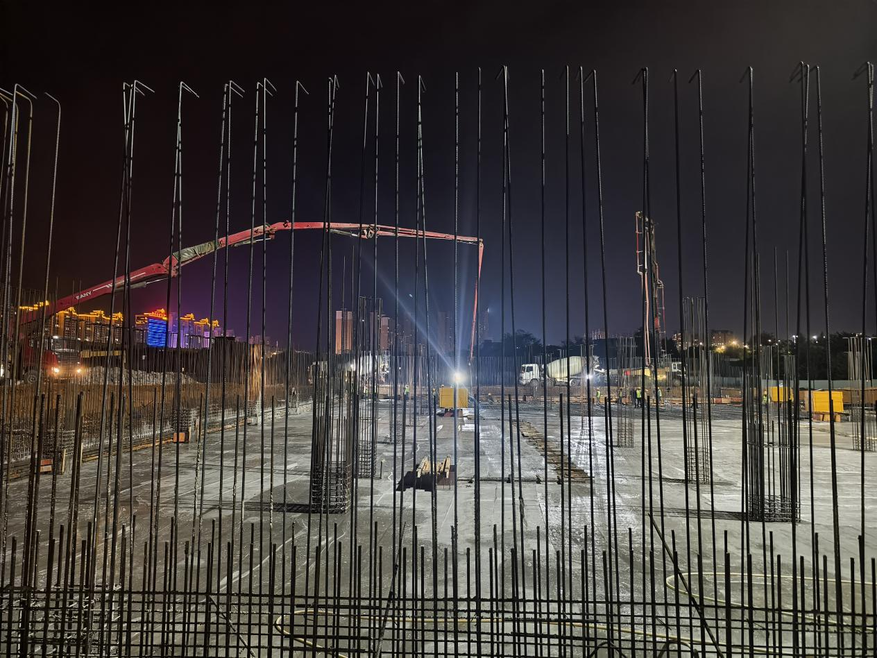 自10月8日上午6點08分開盤澆筑以來,項目投入2臺天泵、20臺混凝土攪拌車、50余人次施工人員輪班作業(yè),晝夜不停地將混凝土傾注于基坑,最終高效、優(yōu)質(zhì)地完成此次澆筑任務(wù),再次上演了新“湘江速度”。