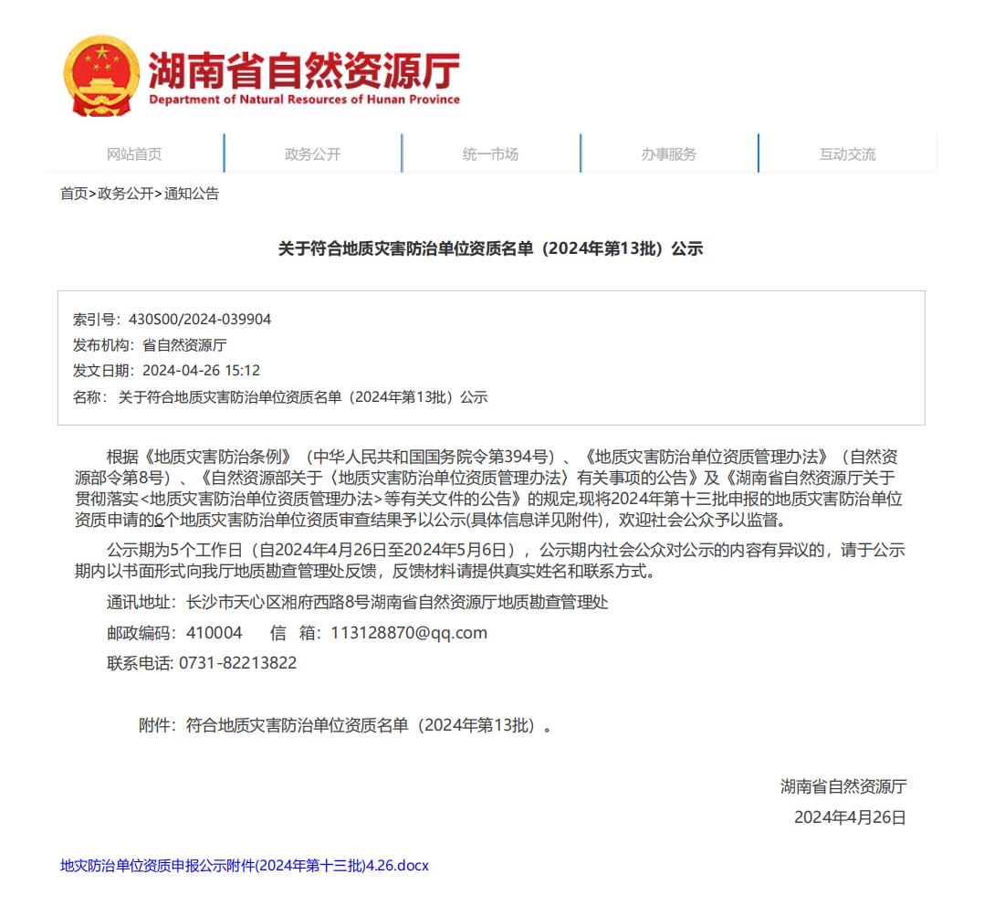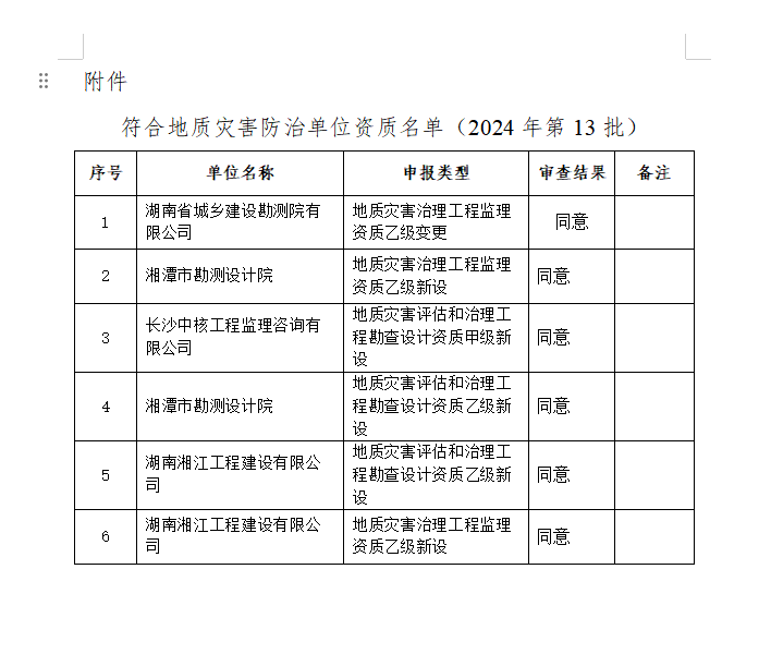近日,湖南省自然資源廳公布了“關(guān)于符合地質(zhì)災(zāi)害防治單位資質(zhì)名單(2024年第13批)公示”,經(jīng)資料審核、現(xiàn)場核實(shí)、專家評審,湘江公司順利取得地質(zhì)災(zāi)害評估和治理工程勘查設(shè)計、地質(zhì)災(zāi)害治理工程監(jiān)理兩項(xiàng)乙級新設(shè)資質(zhì)。在現(xiàn)有地質(zhì)災(zāi)害防治治理施工甲級的基礎(chǔ)上延伸了公司地災(zāi)資質(zhì)產(chǎn)業(yè)鏈,為地災(zāi)業(yè)務(wù)開拓和多元化發(fā)展,以及向地質(zhì)主業(yè)轉(zhuǎn)型奠定了堅(jiān)實(shí)基礎(chǔ)。