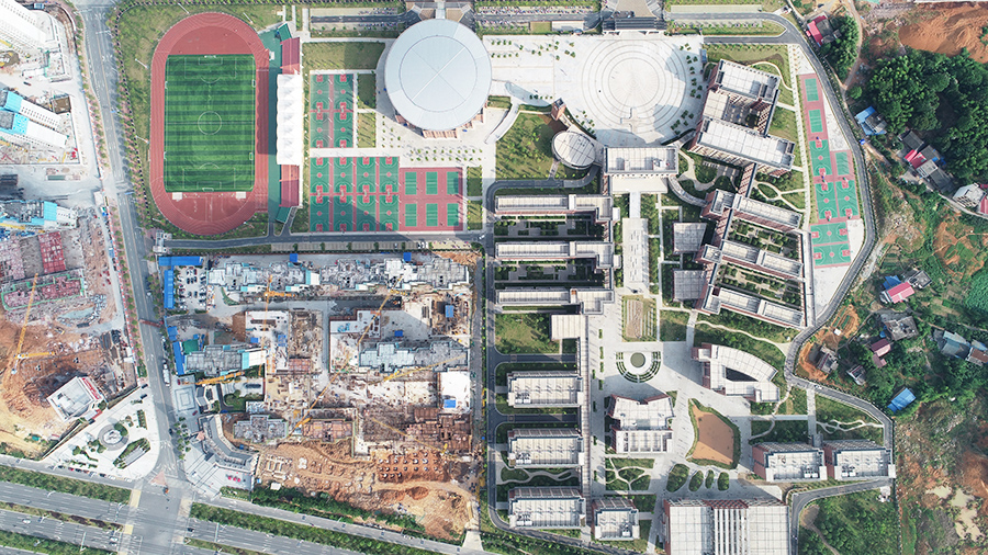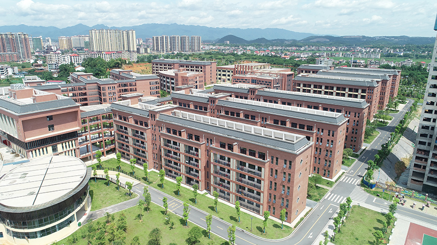 按照規(guī)劃設(shè)計,學(xué)校分為高中部、初中部兩個教學(xué)單元,共開設(shè)教學(xué)班150個,招收學(xué)生約7500名,招聘及安置教職工600余名。校區(qū)內(nèi)包含行政樓、教學(xué)樓、科學(xué)館、藝術(shù)樓、圖書館、體育館、宿舍、食堂等23個單體建筑和田徑場、羽毛球場、籃球場等多項配套設(shè)施,整個校區(qū)按南北走向呈對稱布局,功能分區(qū)緊湊合理,校園自然環(huán)境優(yōu)美,為武岡及周邊縣市莘莘學(xué)子提供優(yōu)質(zhì)的辦學(xué)硬件條件。